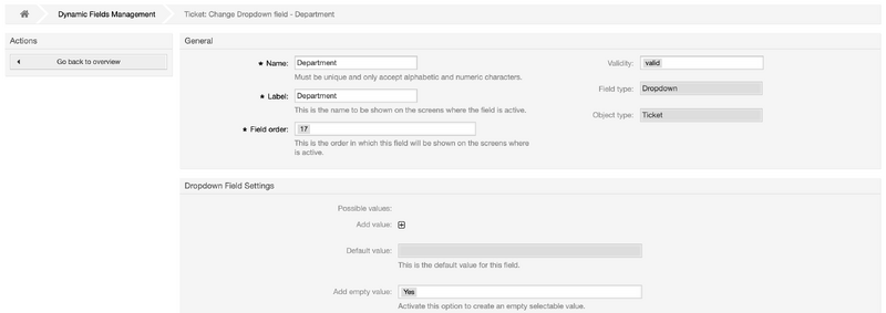 Create the required fields of the type drop down. The possible keys and values do not have to be created completely; they can also be added later via the Excel or CSV file.