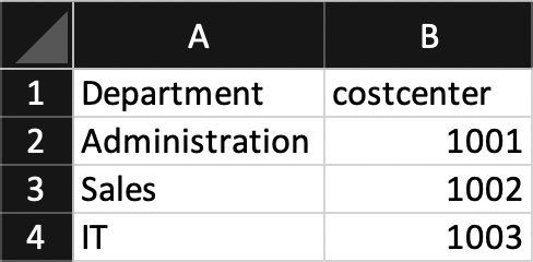 - Department ↔︎ cost center